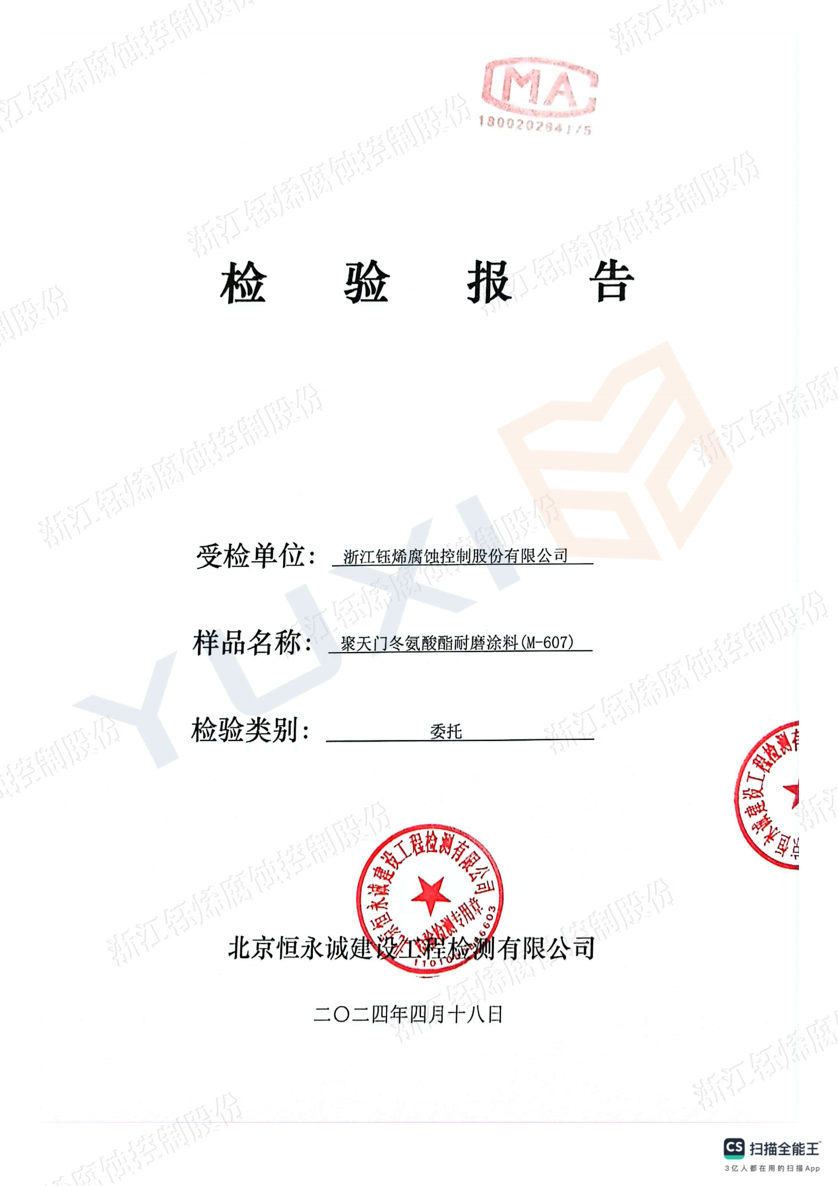 M-607 聚天门冬氨酸酯耐磨涂料