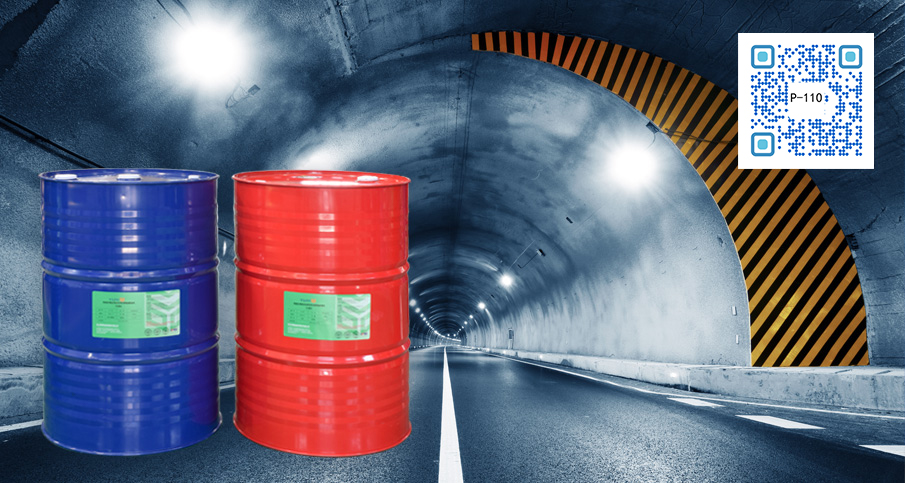 P-110喷涂聚脲防水涂料由异氰酸酯类化合物为A组分,胺类化合物为B组分,采用专用高压喷涂设备使两组份混合反应生成的弹性体防水涂料。该产品无溶剂,绿色环保;快速固化,一次成型;无缝防水,抗渗性强,弹性抗裂,且耐久性优异,抗老化性能强。产品技术指标均满足GB/T 23446-2009 《喷涂聚脲防水涂料》Ⅰ型标准要求。